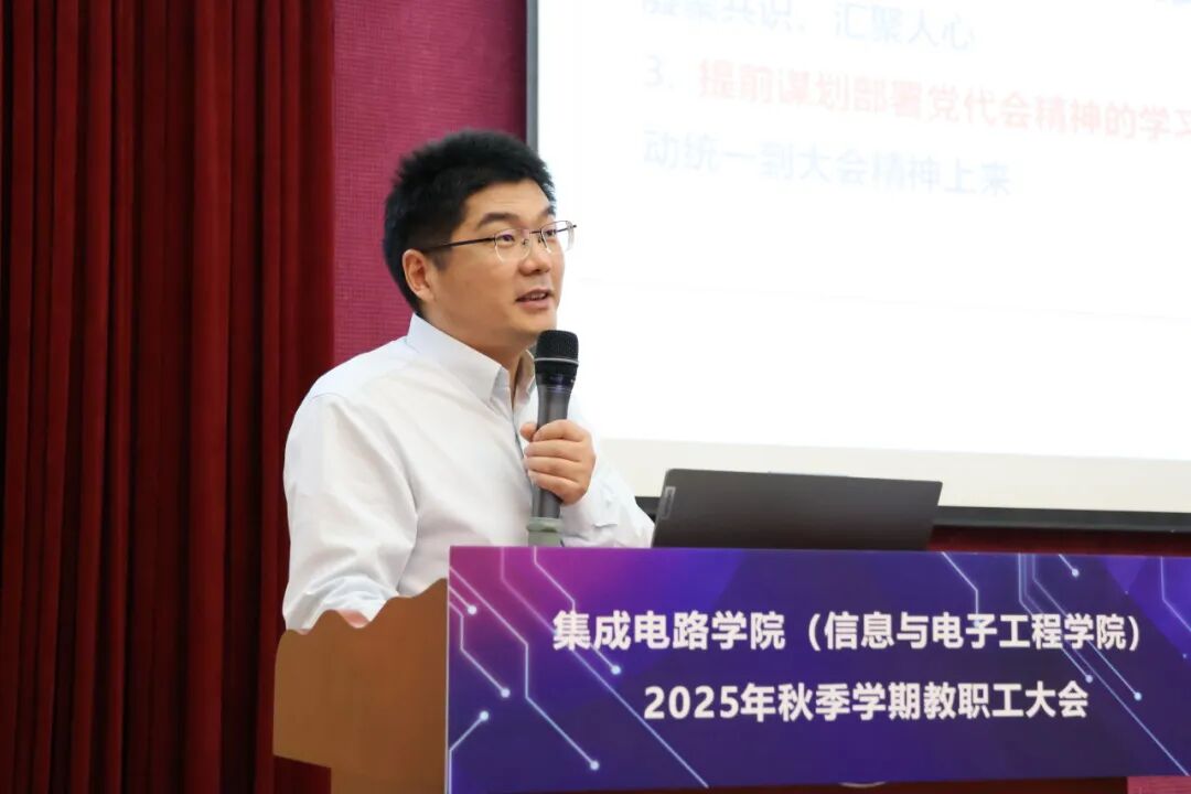 10月15日,集成电路学院(信息与电子工程学院)2025年秋季学期全院教职工大会顺利召开。会议由学院党委副书记丁良辉主持。