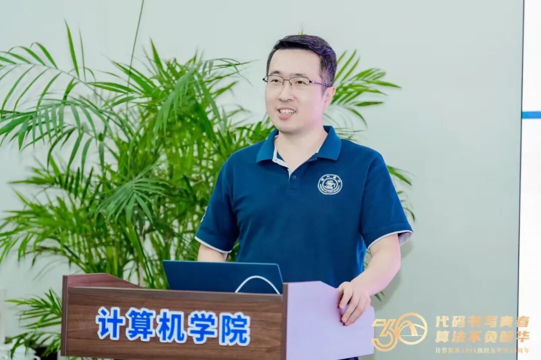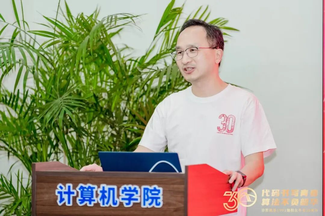 孙斐校友代表全体1991级校友发言,他在发言中深情回望求学岁月,感恩母校培养,生动分享了自己参与计算机高速发展三十年的深刻感悟,并表示1991级校友愿意成为学院与产业界最坚实的桥梁,为学院贡献力量。